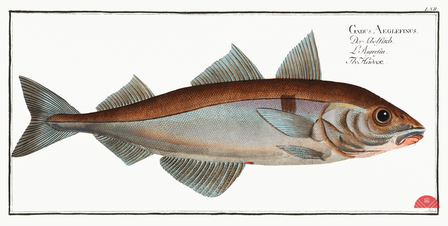 Hadock Gadus Aeglefinus from Ichtylogie ou Histoire naturelle: génerale et particuliére des poissons 1785-1797 by Marcus Eliser 1723-1799
