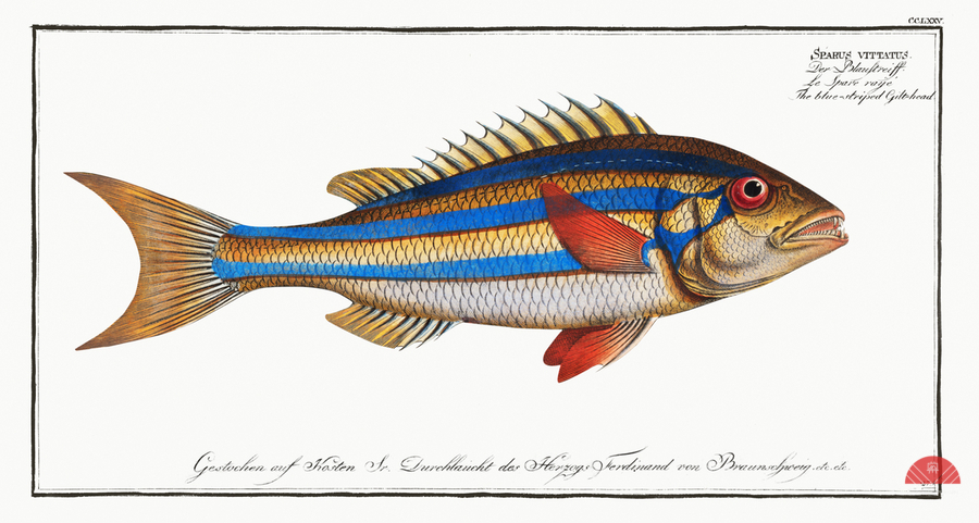 Blue-striped Gilt-head Sparus vittatus from Ichtylogie ou Histoire naturelle: génerale et particuliére des poissons 1785-1797 by Marcus Eliser 1723-1799