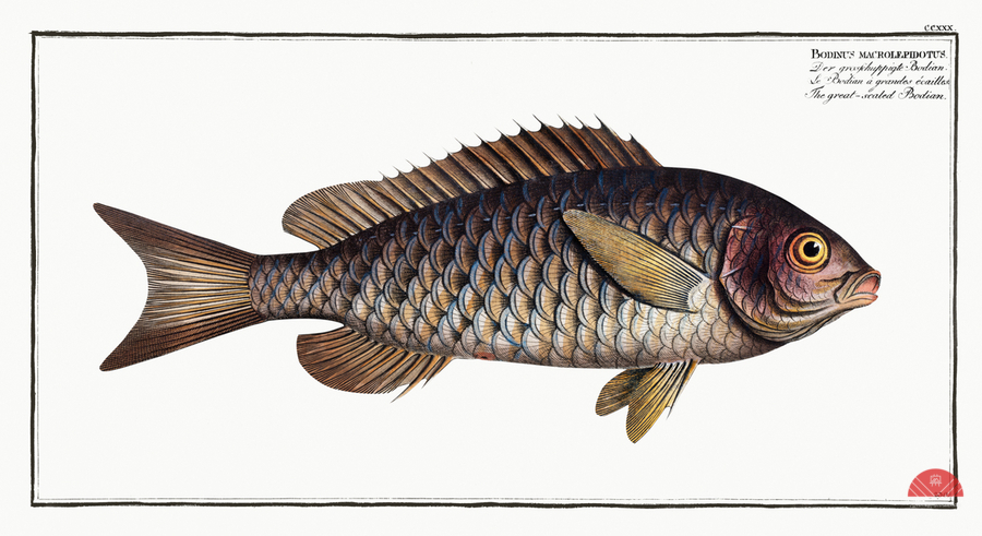 Great-scaled Bodian Bodianus macrolepidotus from Ichtylogie ou Histoire naturelle: génerale et particuliére des poissons 1785-1797 by Marcus Eliser 1723-1799