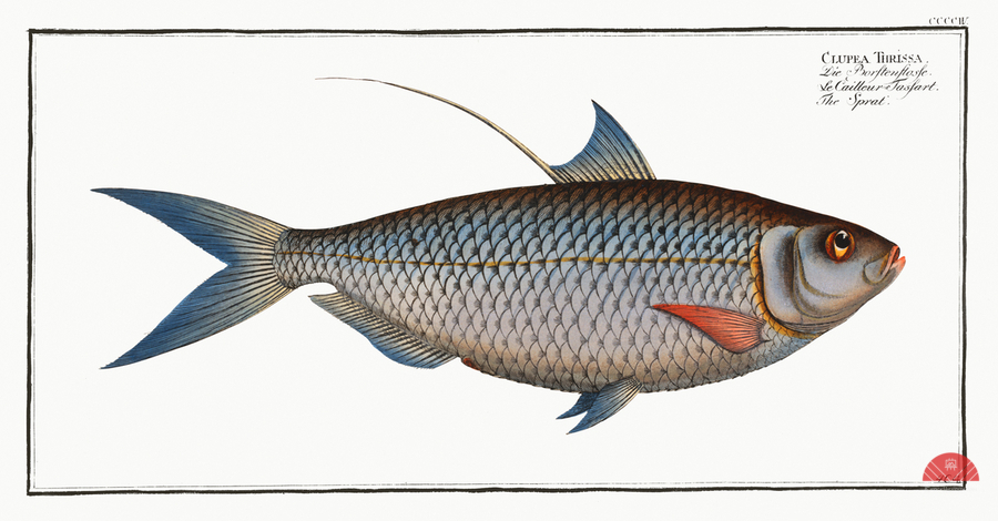 Sprat Clupea Thrissa from Ichtylogie ou Histoire naturelle: génerale et particuliére des poissons 1785-1797 by Marcus Eliser 1723-1799