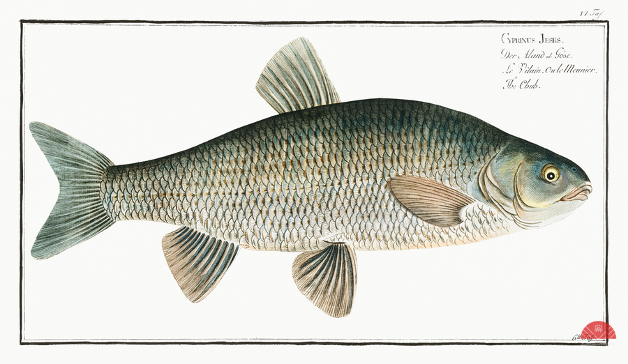 Chub Cyprinus Jeses from Ichtylogie ou Histoire naturelle: génerale et particuliére des poissons 1785-1797 by Marcus Eliser 1723-1799