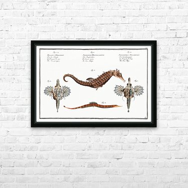 Get this artwork "1. 2. Sea Dragon Pegasus Draconis 3. Sea-Horse Syngnathus Hippocampus 4. Sea-Pipe Syngnathus Pelagicus" in a framed print.