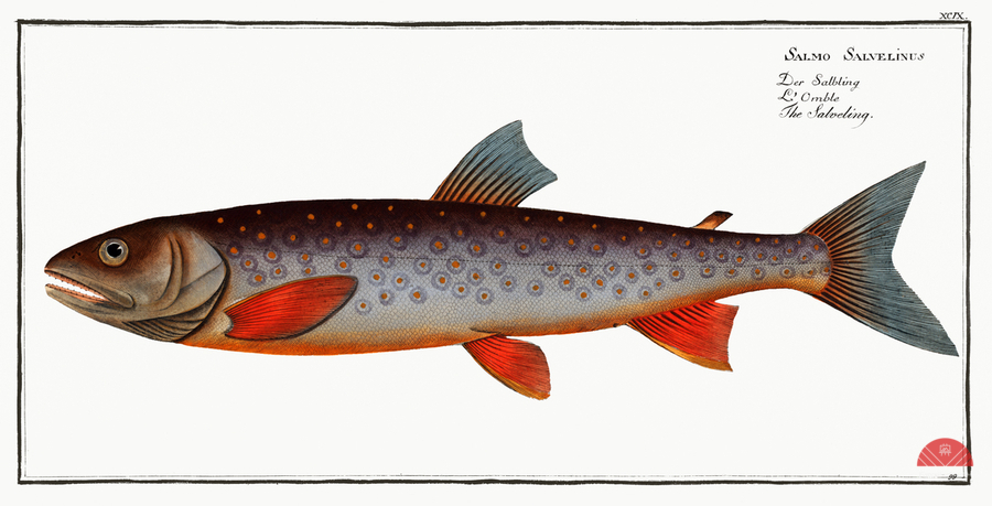 Salveling Salmo Salvelinus from Ichtylogie ou Histoire naturelle: génerale et particuliére des poissons 1785-1797 by Marcus Eliser 1723-1799