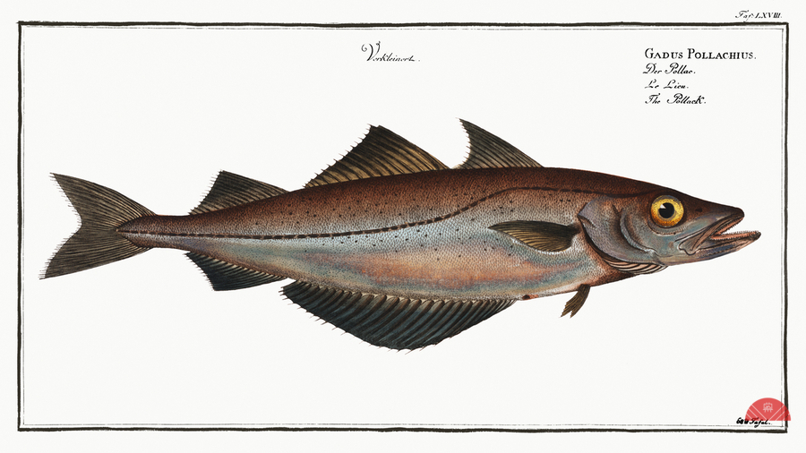 Pollack Gadus Pollachius from Ichtylogie ou Histoire naturelle: génerale et particuliére des poissons 1785-1797 by Marcus Eliser 1723-1799