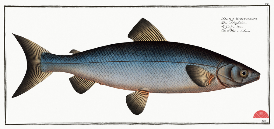 Blue-Salmon Salmo Wartmanni from Ichtylogie ou Histoire naturelle: génerale et particuliére des poissons 1785-1797 by Marcus Eliser 1723-1799