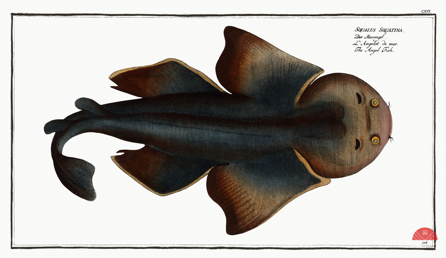 Angel FIsh Squalus Squatina from Ichtylogie ou Histoire naturelle: génerale et particuliére des poissons 1785-1797 by Marcus Eliser 1723-1799