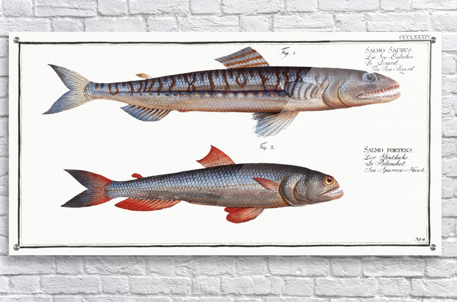 Get this artwork "1. Sea-Lizard Salmo Saurus 2. Sea-Sparrow-Hawk Salmo foetens" in a framed print.