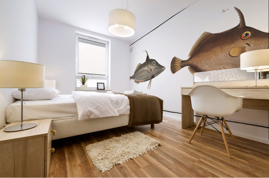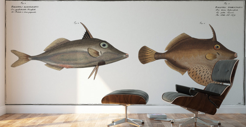 1. Little Old-Wife Balistes Tomentosus 2. Short-nosed tripod fish Balistes biaculeatus  Wood print