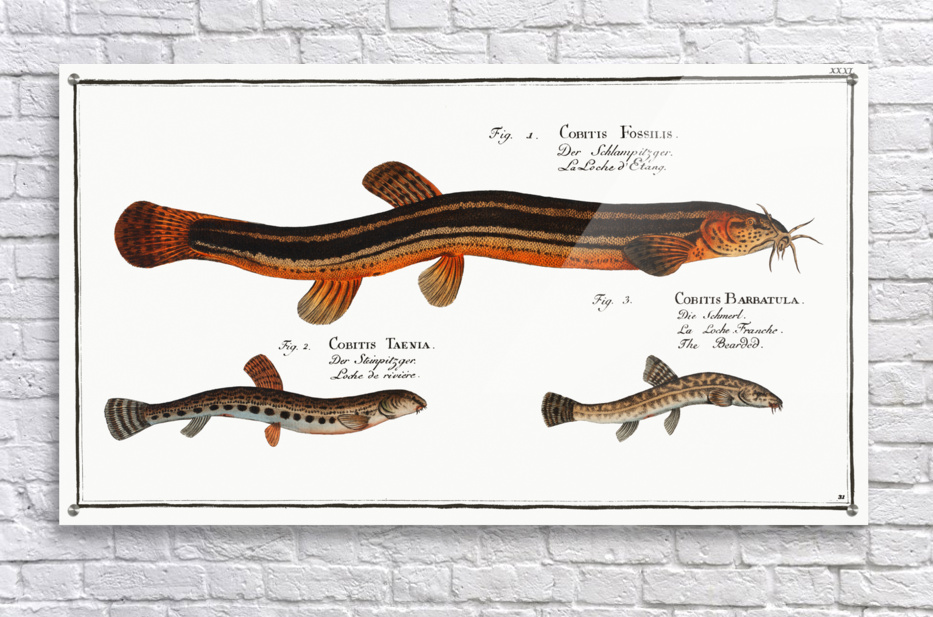 1. Muddy-Loach Cobitis Fossilis 2. Ribban-Loach Cobitis Taenia 3. Bearded-Loach Cobitis Bartula Picture Frame Printing