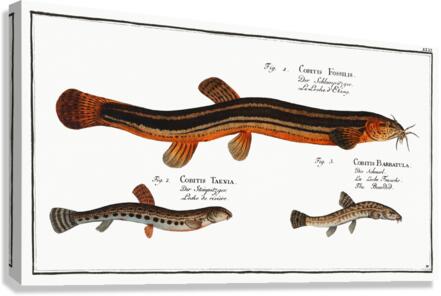 Get this artwork "1. Muddy-Loach Cobitis Fossilis 2. Ribban-Loach Cobitis Taenia 3. Bearded-Loach Cobitis Bartula" in a framed print.