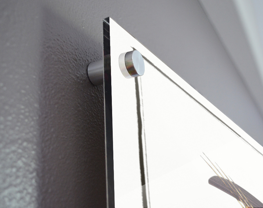 Printed to the edge - Ready to hang - provided with 4 premium polished aluminum stand off ( wall screws and mounting hardware provided ) We suggest a thicker 3/16" acrylic for any size over 42 inches to guarantee a straight acrylic, without curvature