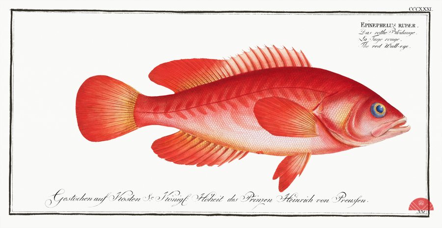 Red Wall-eye Epinephelus ruber from Ichtylogie ou Histoire naturelle: génerale et particuliére des poissons 1785-1797 by Marcus Eliser 1723-1799