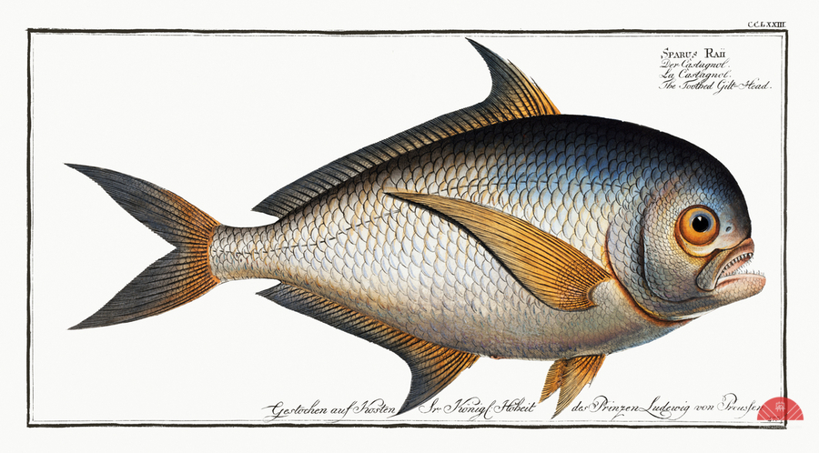 Toothed Gild-Head Sparus Raii from Ichtylogie ou Histoire naturelle: génerale et particuliére des poissons 1785-1797 by Marcus Eliser 1723-1799