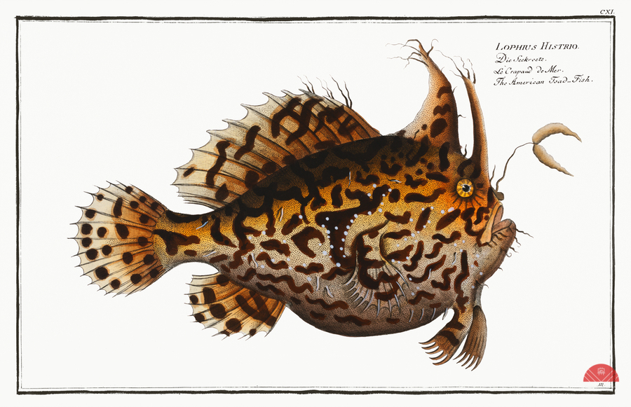 American Toad-Fish Lophius Histrio from Ichtylogie ou Histoire naturelle: génerale et particuliére des poissons 1785-1797 by Marcus Eliser 1723-1799