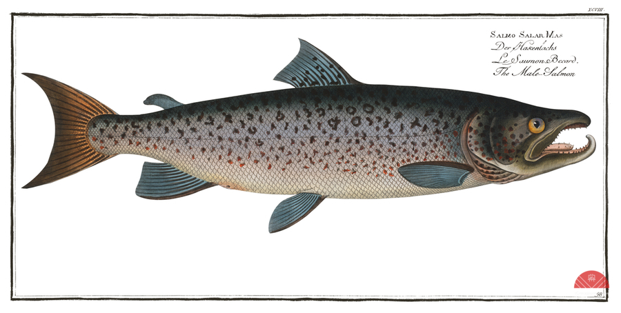 Male-Salmon Salmo Salar Mas from Ichtylogie ou Histoire naturelle: génerale et particuliére des poissons 1785-1797 by Marcus Eliser 1723-1799