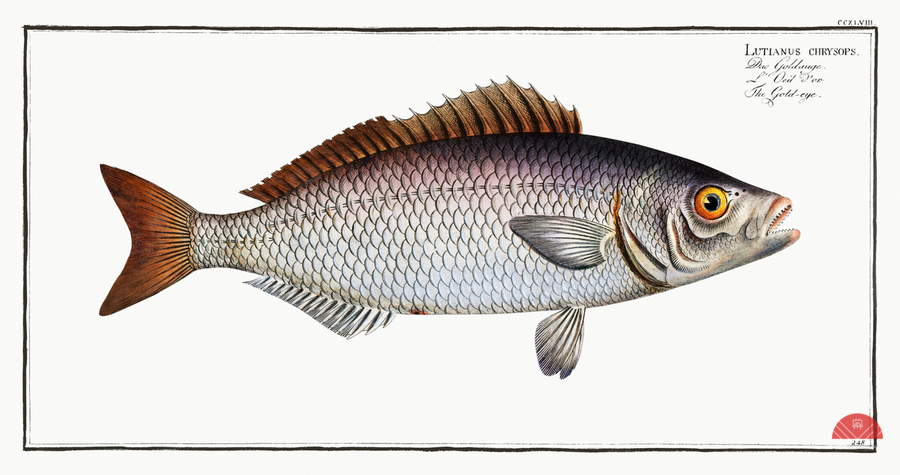 Gold-eye Lutianus chrysops from Ichtylogie ou Histoire naturelle: génerale et particuliére des poissons 1785-1797 by Marcus Eliser 1723-1799