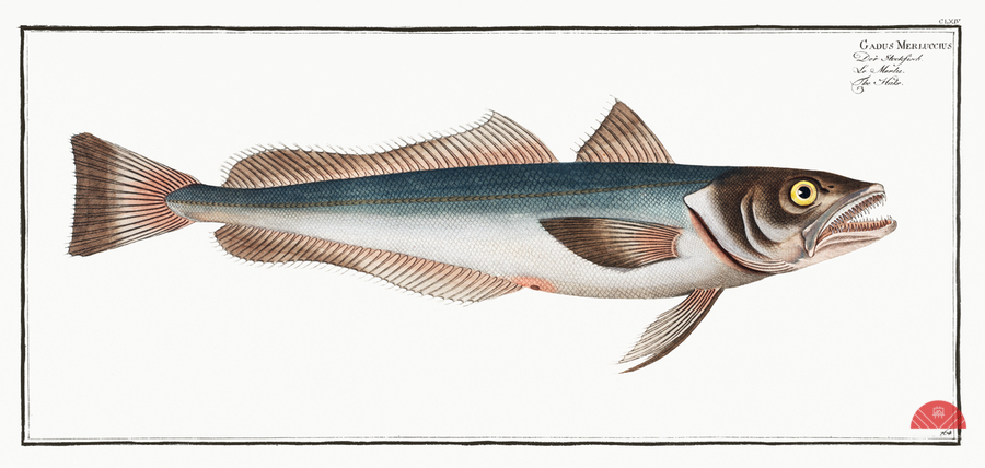 Hake Gadus Merluccius from Ichtylogie ou Histoire naturelle: génerale et particuliére des poissons 1785-1797 by Marcus Eliser 1723-1799