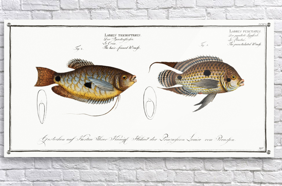 Get this artwork "1. Punctulated Wrasse Labrus punctatus 2. Hair-finned Wrasse Labrus trichonterus" in a framed print.