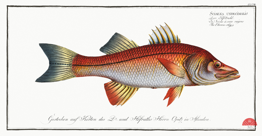 Eleven-ray Sciaena undecimalis from Ichtylogie ou Histoire naturelle: génerale et particuliére des poissons 1785-1797 by Marcus Eliser 1723-1799