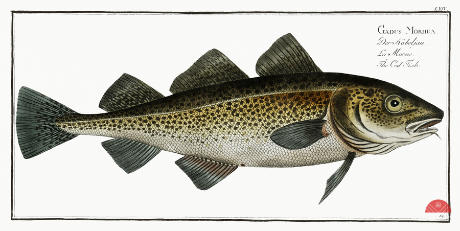 Cod Fish Gadus Morhua from Ichtylogie ou Histoire naturelle: génerale et particuliére des poissons 1785-1797 by Marcus Eliser 1723-1799