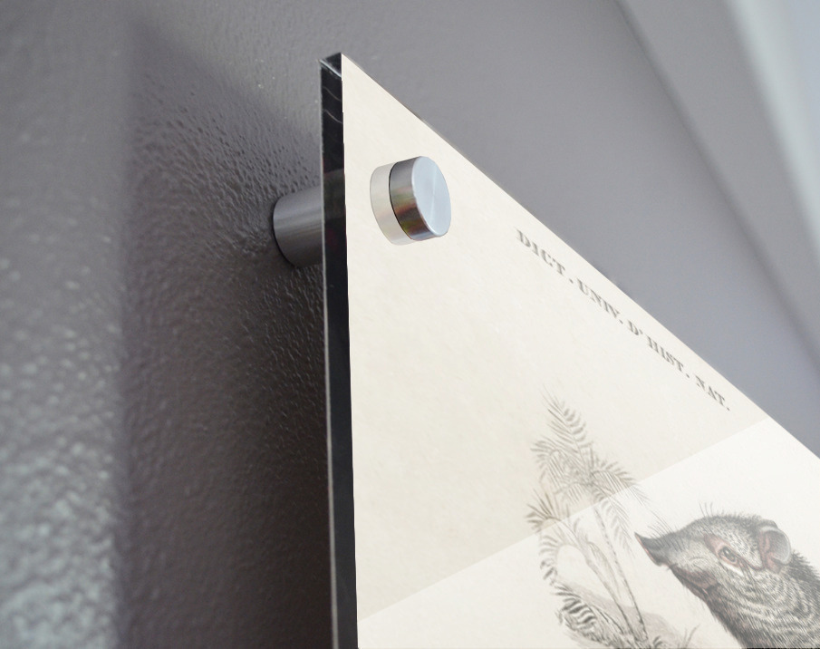 Printed to the edge - Ready to hang - provided with 4 premium polished aluminum stand off ( wall screws and mounting hardware provided ) We suggest a thicker 3/16" acrylic for any size over 42 inches to guarantee a straight acrylic, without curvature