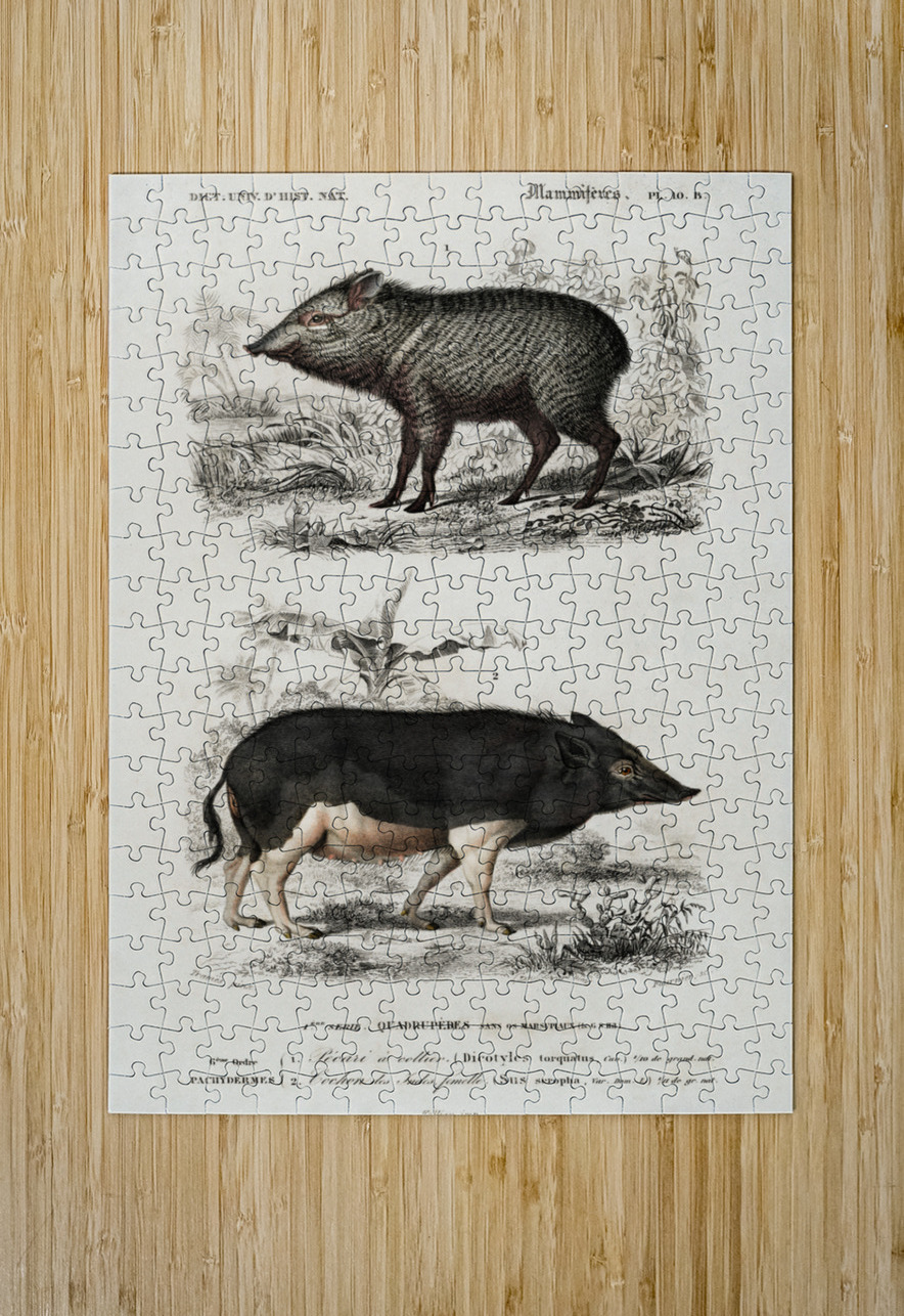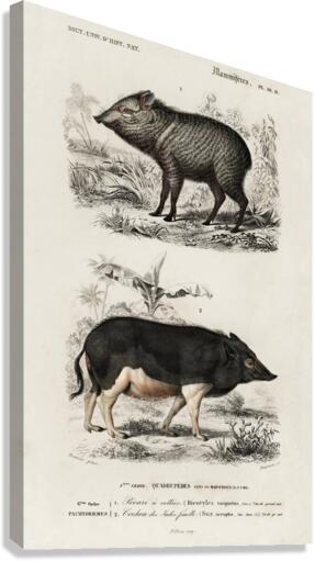 Pecari and Sus scropha Dictionnaire Universel Dhistoire Naturelle 1892 illustrated by Charles Dessalines Orbigny 1806-1876.