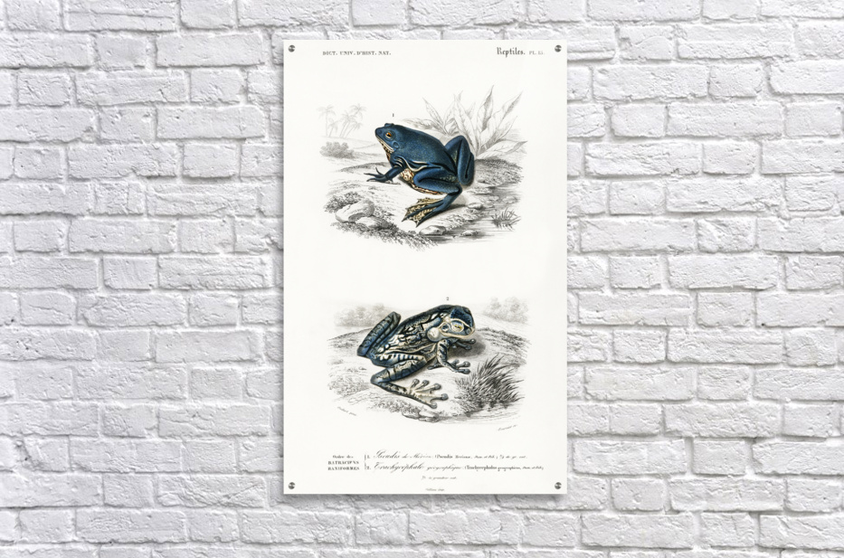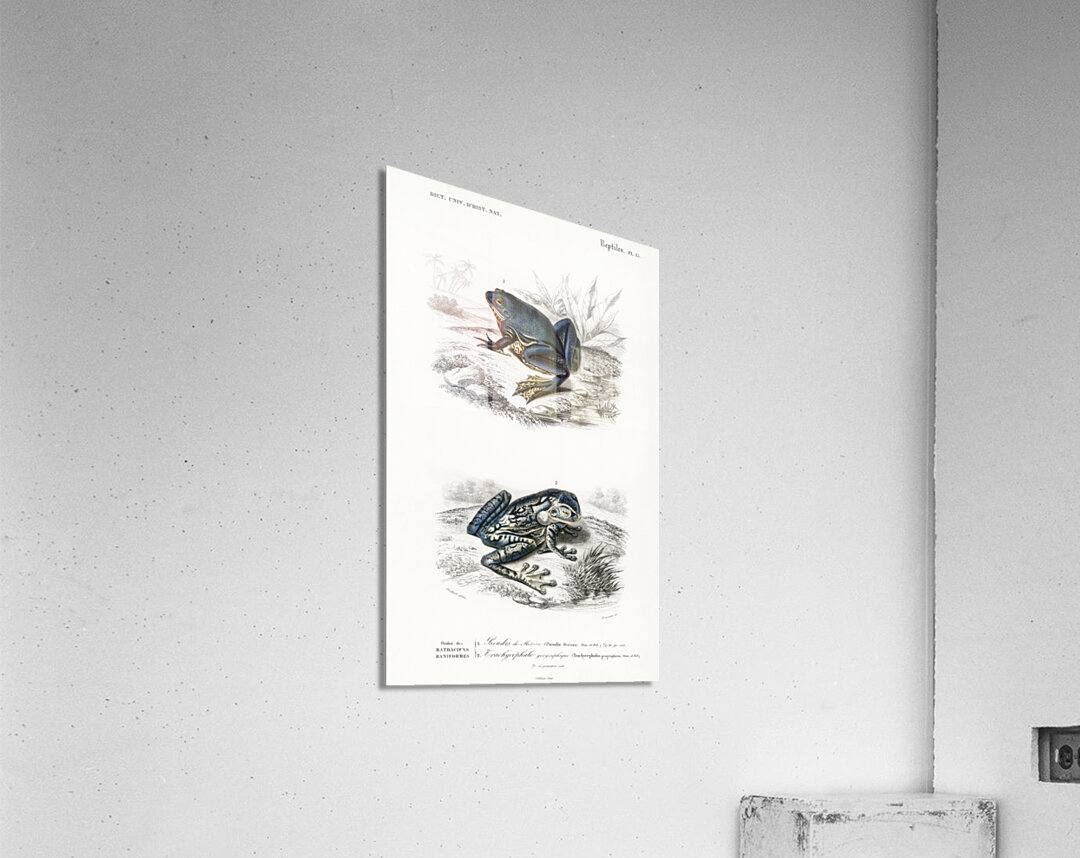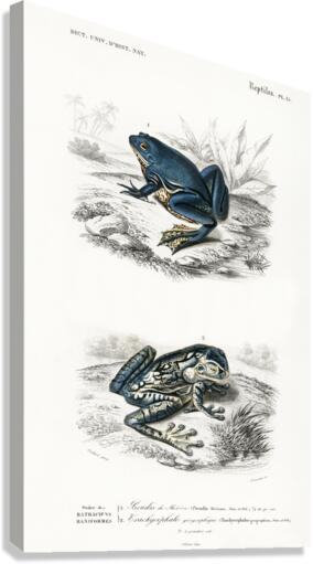Shrinking frog Pseudis Merianae and Black-spotted casque-headed tree Trachycephalus geographieus Dictionnaire Universel Dhistoire Naturelle 1892 illustrated by Charles Dessalines Orbigny 1806-1876.