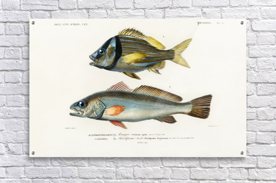 Porkfish Pristipoma virginianum and Shade-fish Sciaena aquila Dictionnaire Universel Dhistoire Naturelle 1892 illustrated by Charles Dessalines Orbigny 1806-1876.
