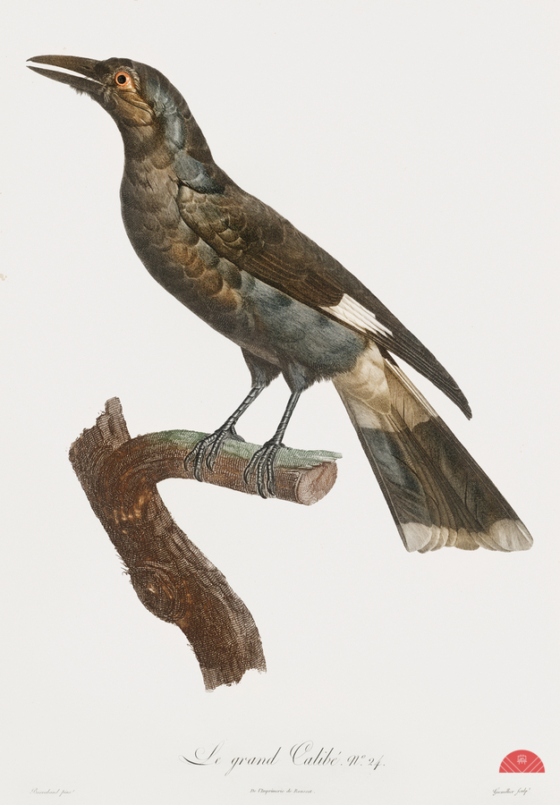 Curl-crested Manucode from Histoire Naturelle des Oiseaux de Paradis et Des Rolliers 1806 by Jacques Barraband 1767-1809.
