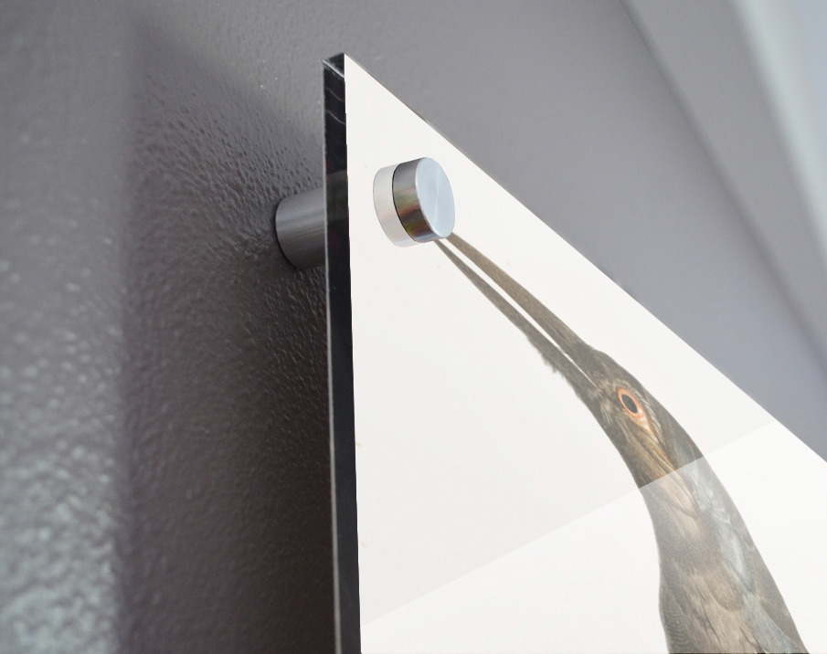 Printed to the edge - Ready to hang - provided with 4 premium polished aluminum stand off ( wall screws and mounting hardware provided ) We suggest a thicker 3/16" acrylic for any size over 42 inches to guarantee a straight acrylic, without curvature