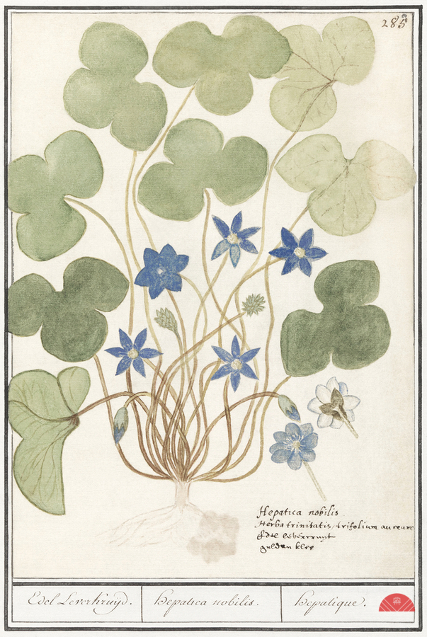 Liver flower Anemone hepatica old name: Hepatica nobilis 1596–1610 by Anselmus Boëtius de Boodt.