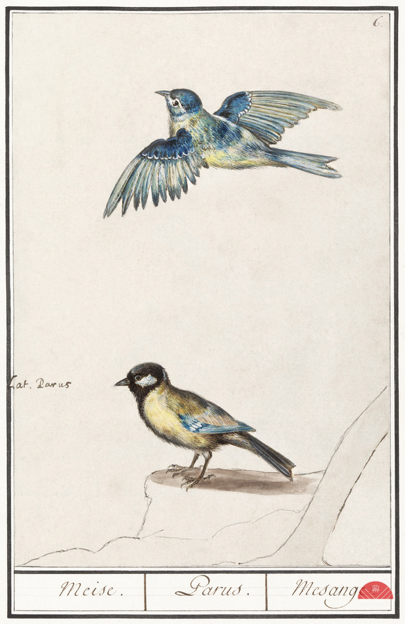Blue tit cyanistes caeruleus and great tit parus major 1596–1610 by Anselmus Boëtius de Boodt.