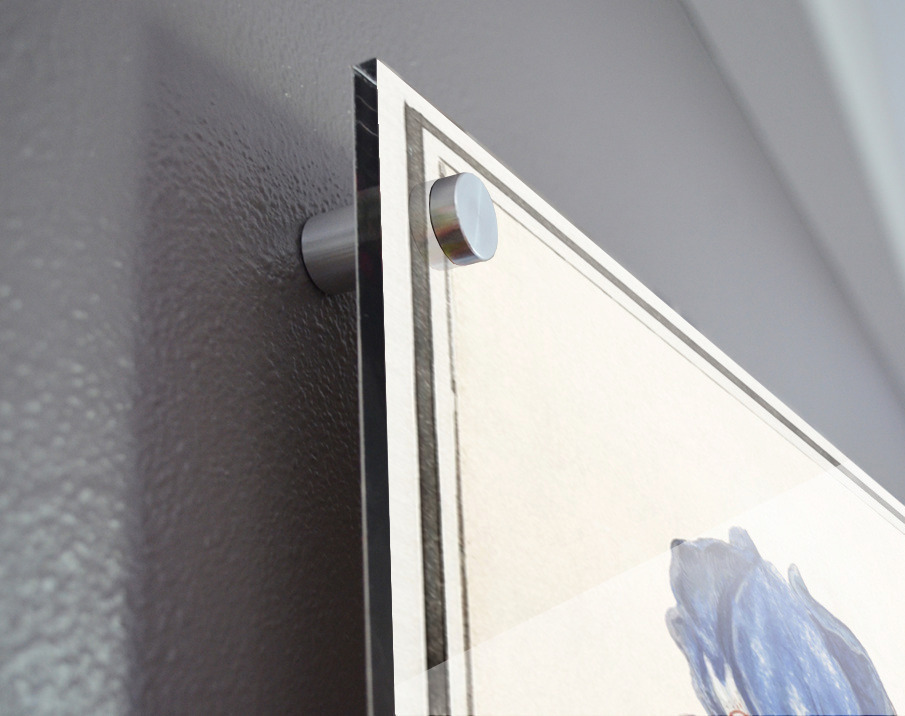 Printed to the edge - Ready to hang - provided with 4 premium polished aluminum stand off ( wall screws and mounting hardware provided ) We suggest a thicker 3/16" acrylic for any size over 42 inches to guarantee a straight acrylic, without curvature
