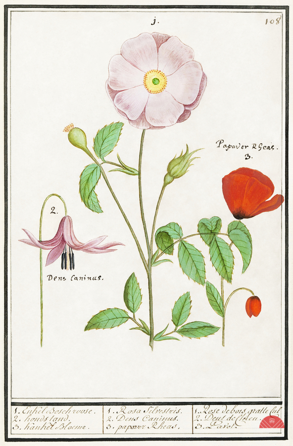 Dogstand Erythronium wild rose Rosa and a poppy Papaver 1596–1610 by Anselmus Boëtius de Boodt.