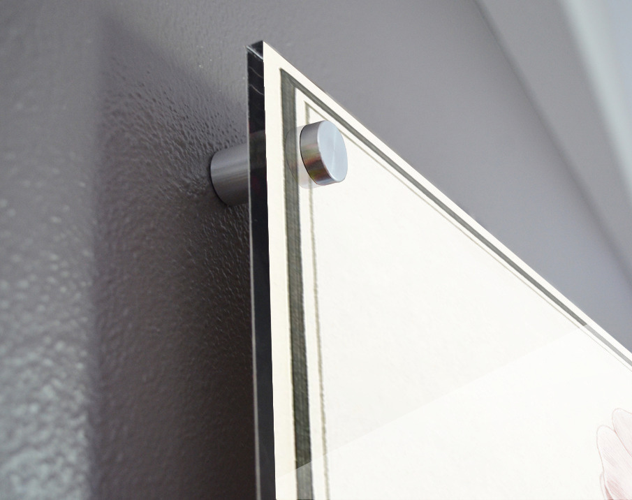 Printed to the edge - Ready to hang - provided with 4 premium polished aluminum stand off ( wall screws and mounting hardware provided ) We suggest a thicker 3/16" acrylic for any size over 42 inches to guarantee a straight acrylic, without curvature