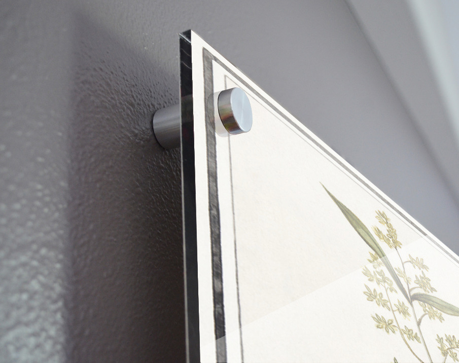 Printed to the edge - Ready to hang - provided with 4 premium polished aluminum stand off ( wall screws and mounting hardware provided ) We suggest a thicker 3/16" acrylic for any size over 42 inches to guarantee a straight acrylic, without curvature