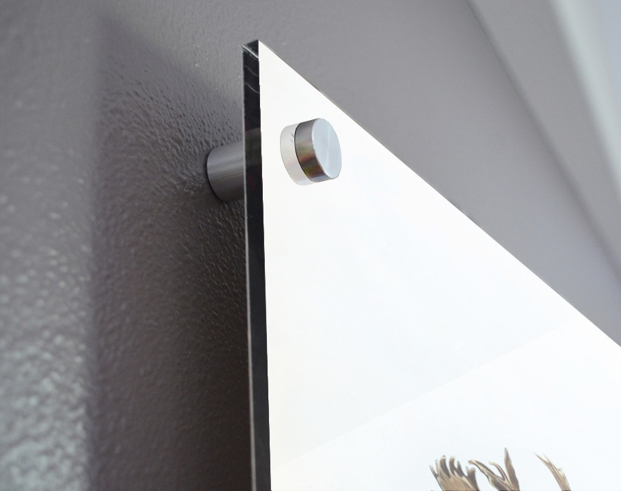 Printed to the edge - Ready to hang - provided with 4 premium polished aluminum stand off ( wall screws and mounting hardware provided ) We suggest a thicker 3/16" acrylic for any size over 42 inches to guarantee a straight acrylic, without curvature
