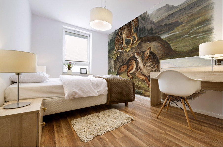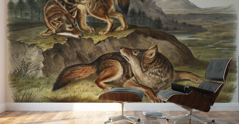 Prairie Wolf Canis latrans from the viviparous quadrupeds of North America 1845 illustrated by John Woodhouse Audubon 1812-1862.