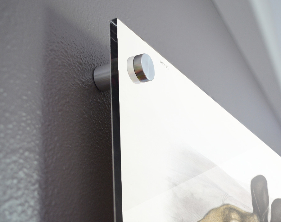 Printed to the edge - Ready to hang - provided with 4 premium polished aluminum stand off ( wall screws and mounting hardware provided ) We suggest a thicker 3/16" acrylic for any size over 42 inches to guarantee a straight acrylic, without curvature