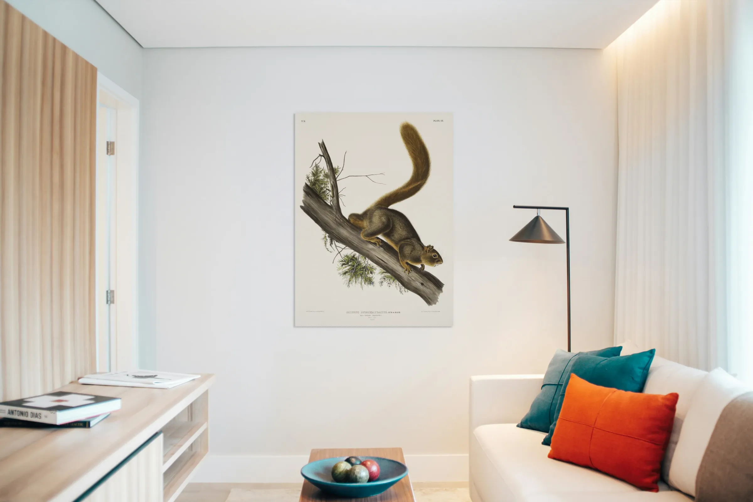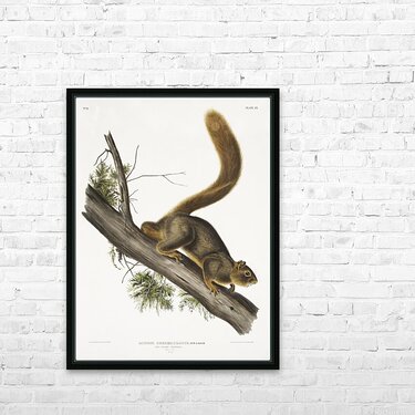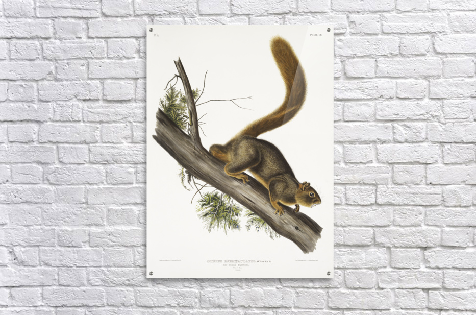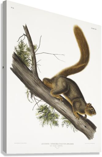 Red-tailed Squirrel Sciurus rubricaudatus from the viviparous quadrupeds of North America 1845 illustrated by John Woodhouse Audubon 1812-1862.