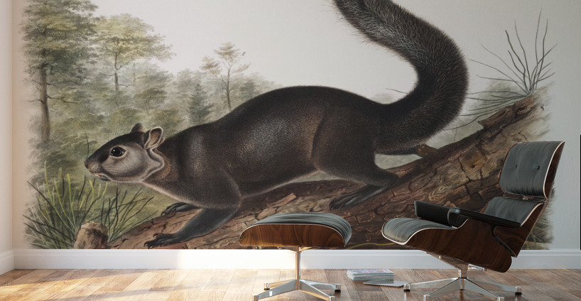 Dusky Sqiurrel Sciurus nigrenscens from the viviparous quadrupeds of North America 1845 illustrated by John Woodhouse Audubon 1812-1862.