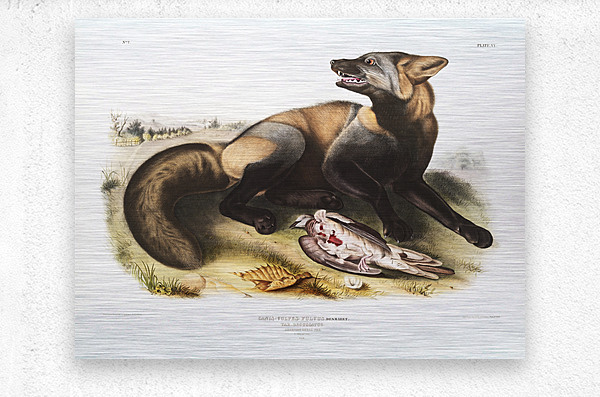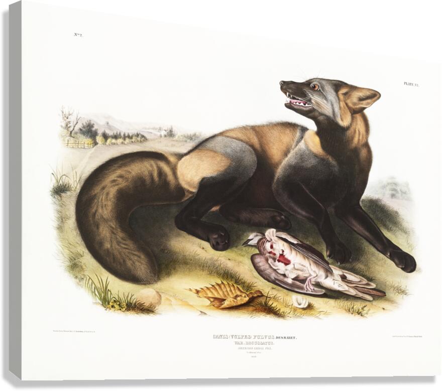 American Cross-Fox Canis vulpes from the viviparous quadrupeds of North America 1845 illustrated by John Woodhouse Audubon 1812-1862.