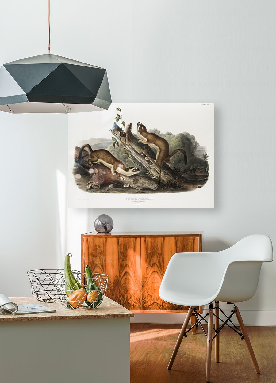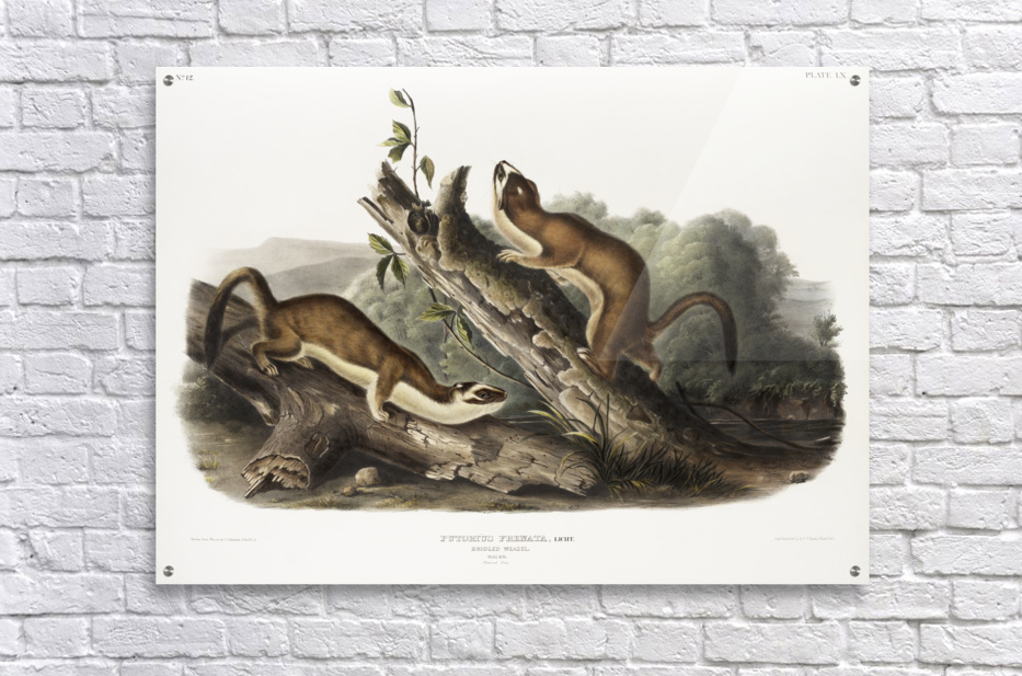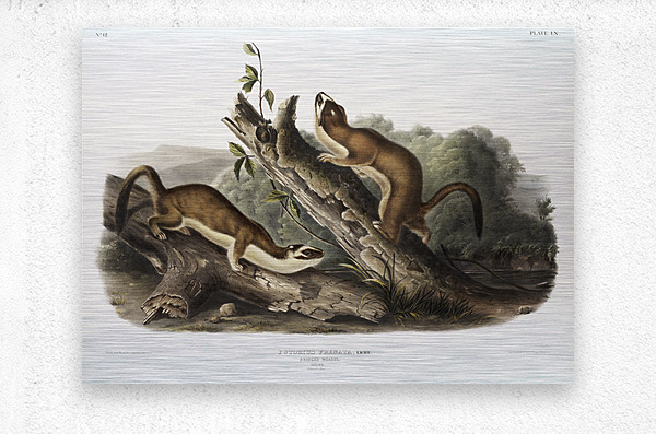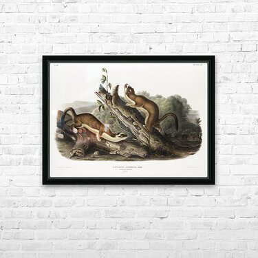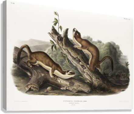 Bridled Weasel Putorius frenata from the viviparous quadrupeds of North America 1845 illustrated by John Woodhouse Audubon 1812-1862.