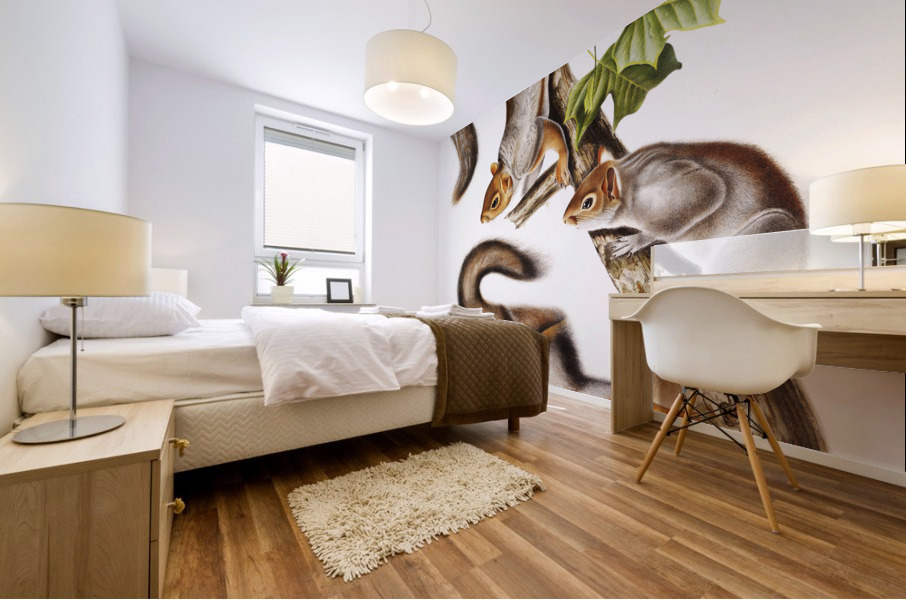 Migratory Squirrel Sciurus migratorius from the viviparous quadrupeds of North America 1845 illustrated by John Woodhouse Audubon 1812-1862.