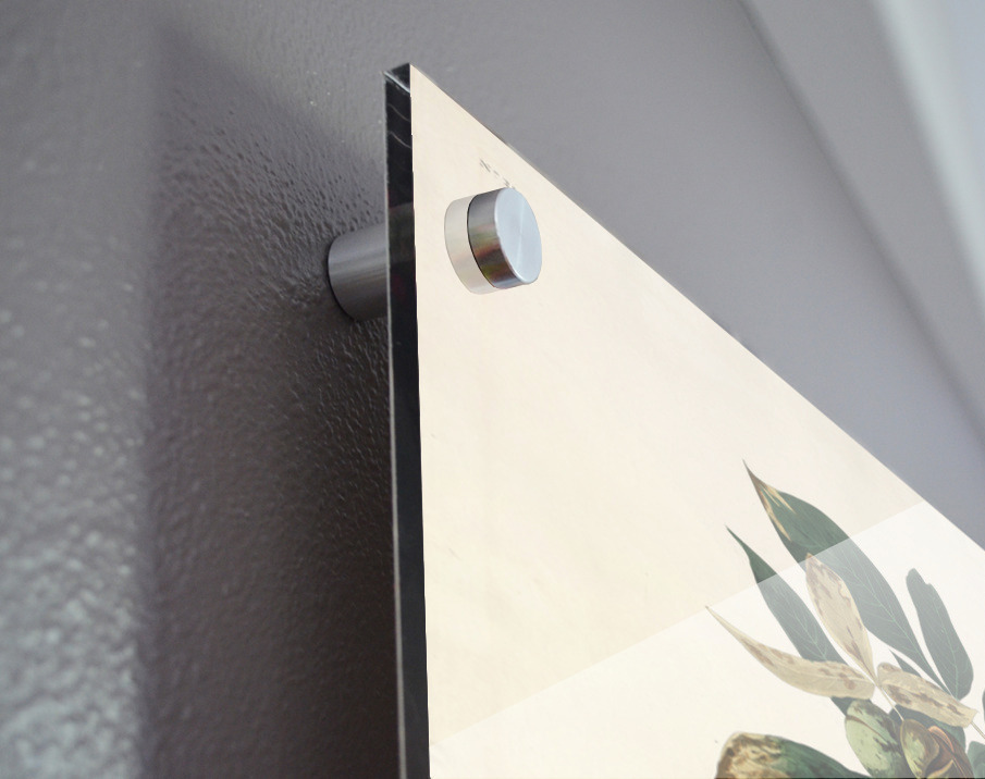 Printed to the edge - Ready to hang - provided with 4 premium polished aluminum stand off ( wall screws and mounting hardware provided ) We suggest a thicker 3/16" acrylic for any size over 42 inches to guarantee a straight acrylic, without curvature
