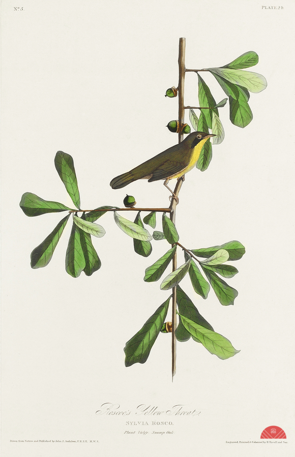 Roscoes Yellow-throat from Birds of America 1827 by John James Audubon 1785 - 1851 etched by Robert Havell 1793 - 1878.