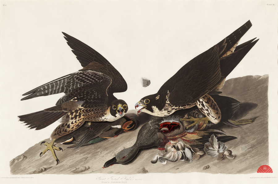 Great Footed Hawk from Birds of America 1827 by John James Audubon 1785 - 1851 etched by Robert Havell 1793 - 1878.