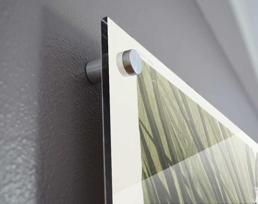 Printed to the edge - Ready to hang - provided with 4 premium polished aluminum stand off ( wall screws and mounting hardware provided ) We suggest a thicker 3/16" acrylic for any size over 42 inches to guarantee a straight acrylic, without curvature