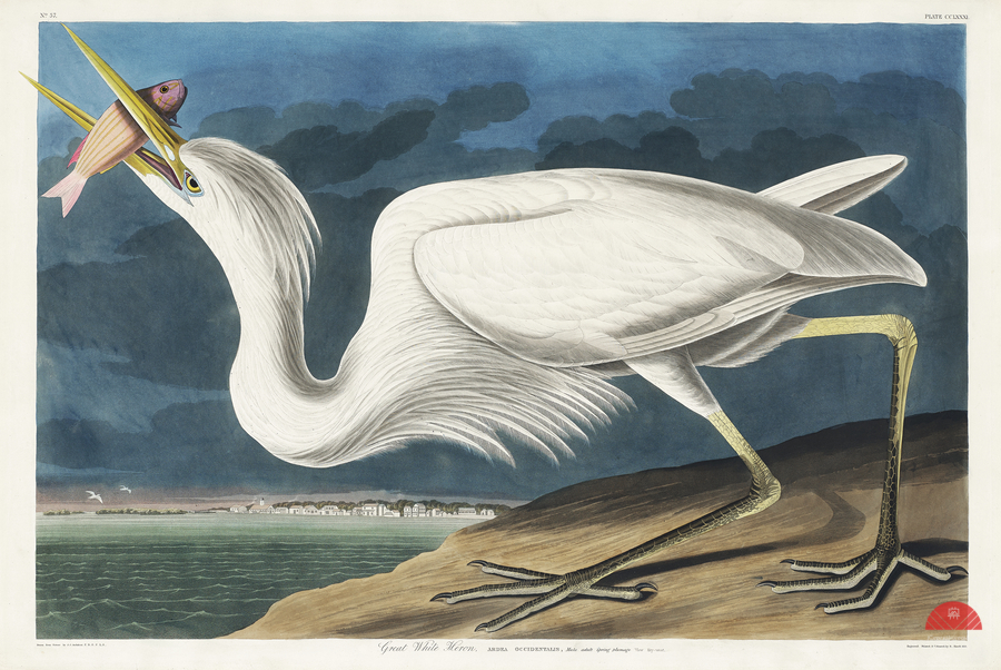 Great White Heron from Birds of America 1827 by John James Audubon 1785 - 1851 etched by Robert Havell 1793 - 1878.