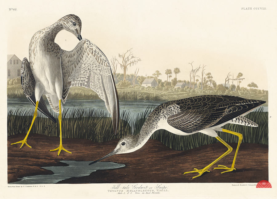 Tell-tale Godwit or Snipe from Birds of America 1827 by John James Audubon 1785 - 1851 etched by Robert Havell 1793 - 1878.